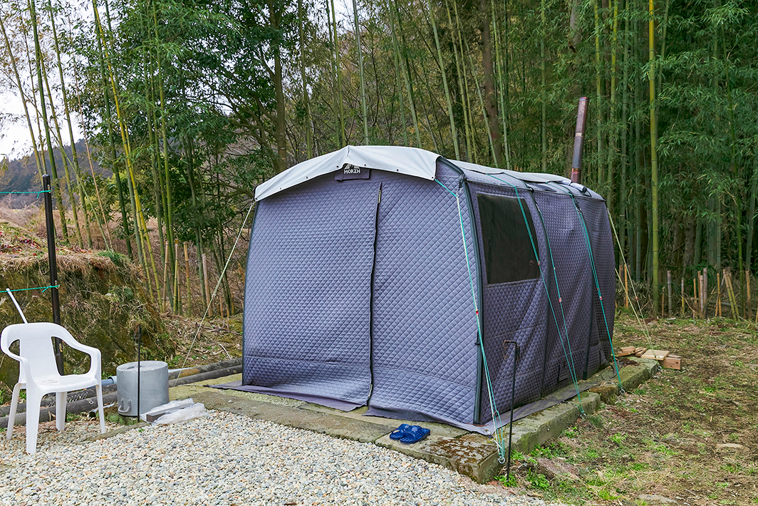昼間休憩できるコンテナハウスで、WIFIでテレワークなどできる施設もご用意しております。テントサウナもご利用いただけます。